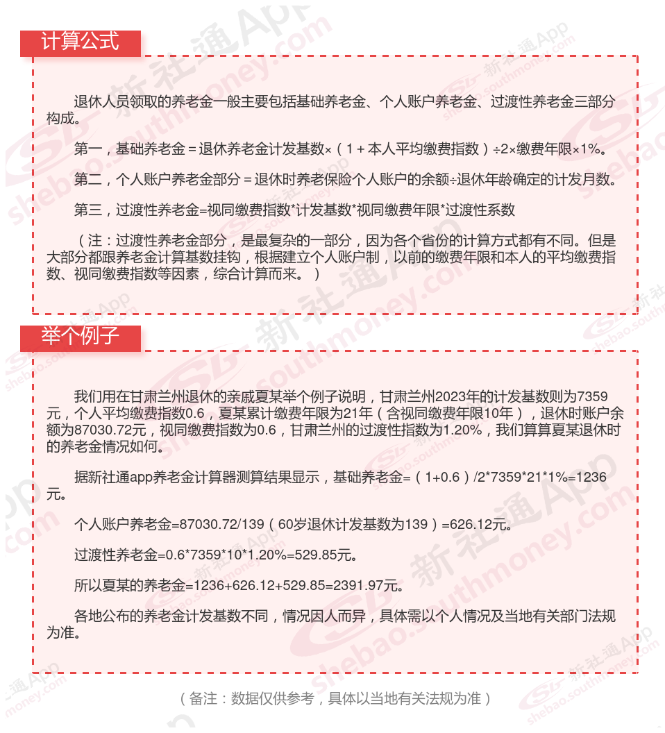 甘肃兰州养老金计算公式2024年计算方法(在线计算器)
