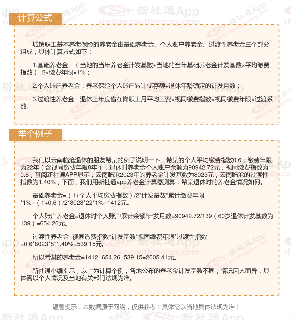 云南临沧养老金计算公式2024年计算方法(在线计算器)
