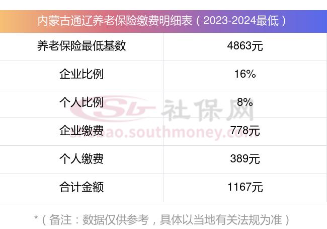 内蒙古通辽养老保险缴费基数2023-2024年最新标准(最低)