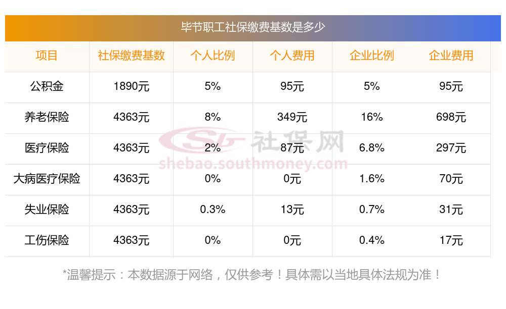 毕节缴费社保比例一览 社保公司和个人各交多少?下表是2023-2024年毕节社保费用明细参考,新社通app-社保缴费查询工具提供的最新数据如下: