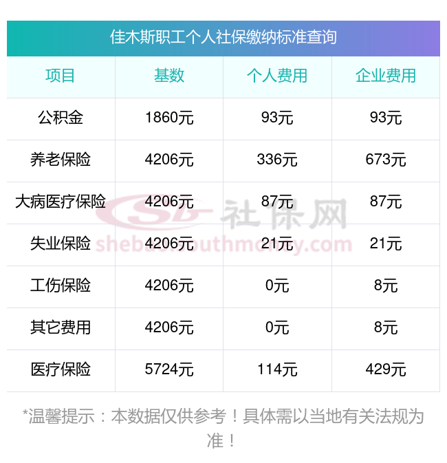 佳木斯社保缴纳明细如下: