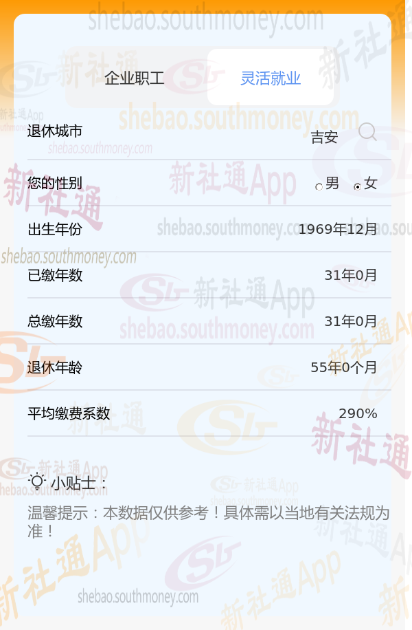 新社通app养老金计算器计算所得: