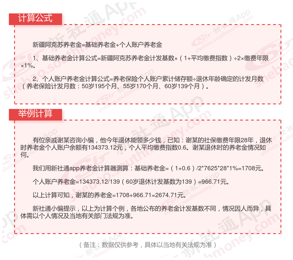 新疆阿克苏养老金计算公式2024年计算方法(在线计算器)