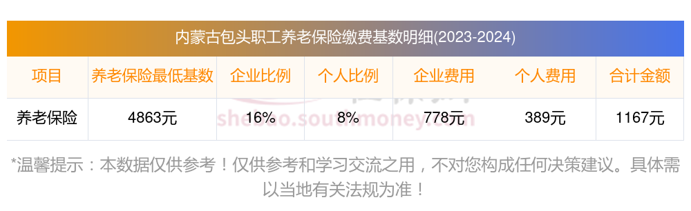内蒙古包头养老保险缴费基数2023-2024年最新标准(最低)要交多少钱一个月?