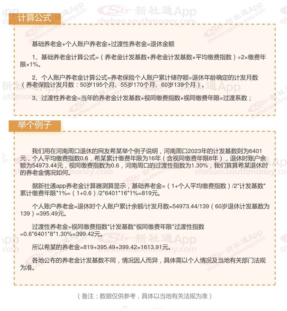河南周口养老保险退休能领多少钱?(在线计算举例说明)