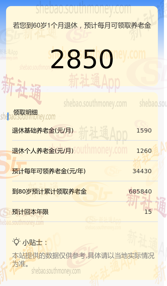 养老金总和:最后,把基础养老金和个人养老金一加,谢某每个月能领到的养老金总额就是大约2850元,这个数可是相当可观的!