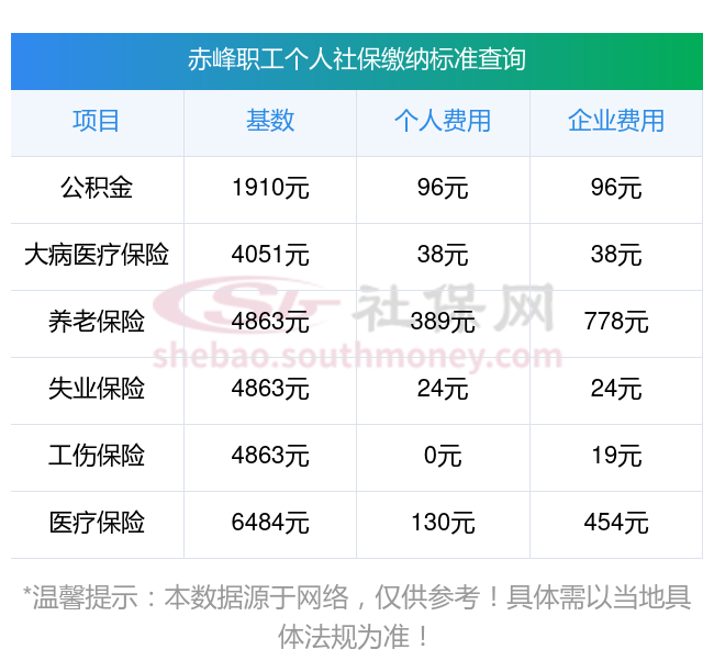赤峰社保缴纳明细如下: