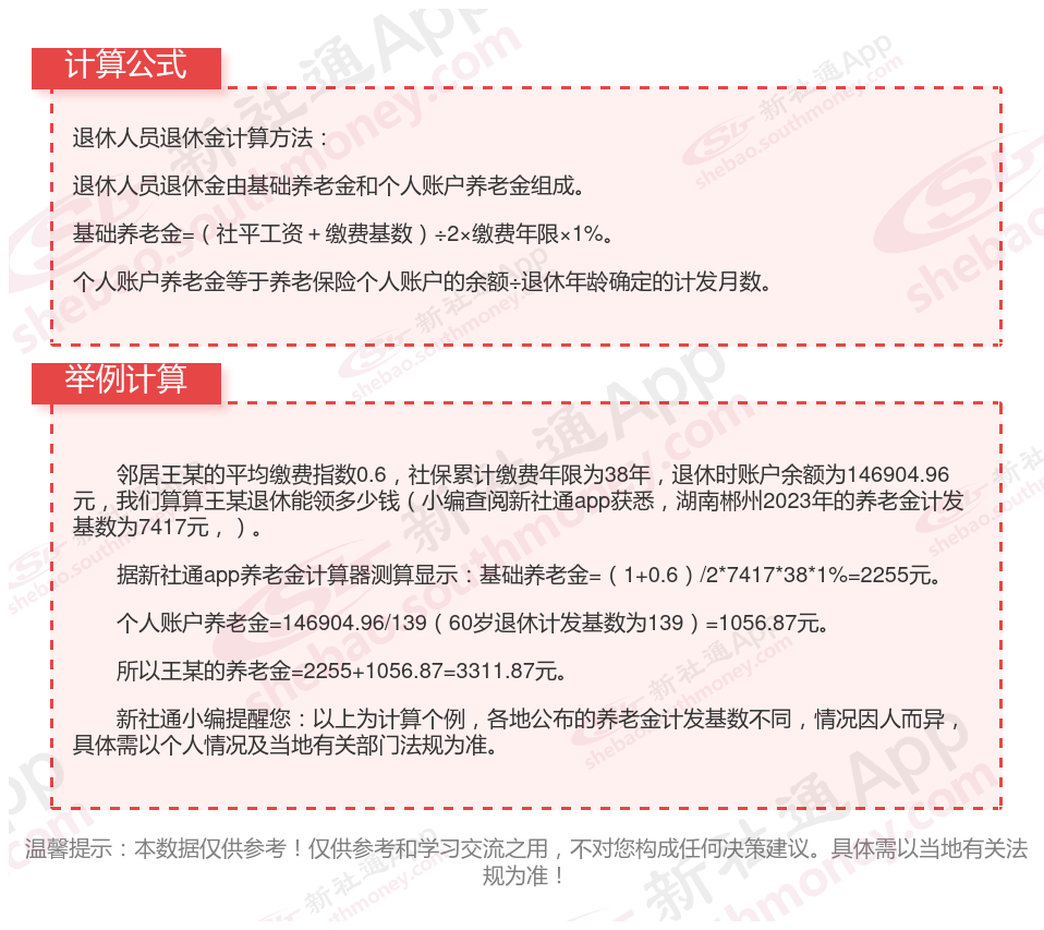 湖南郴州社保养老保险交满能领多少钱?(在线计算举例说明)