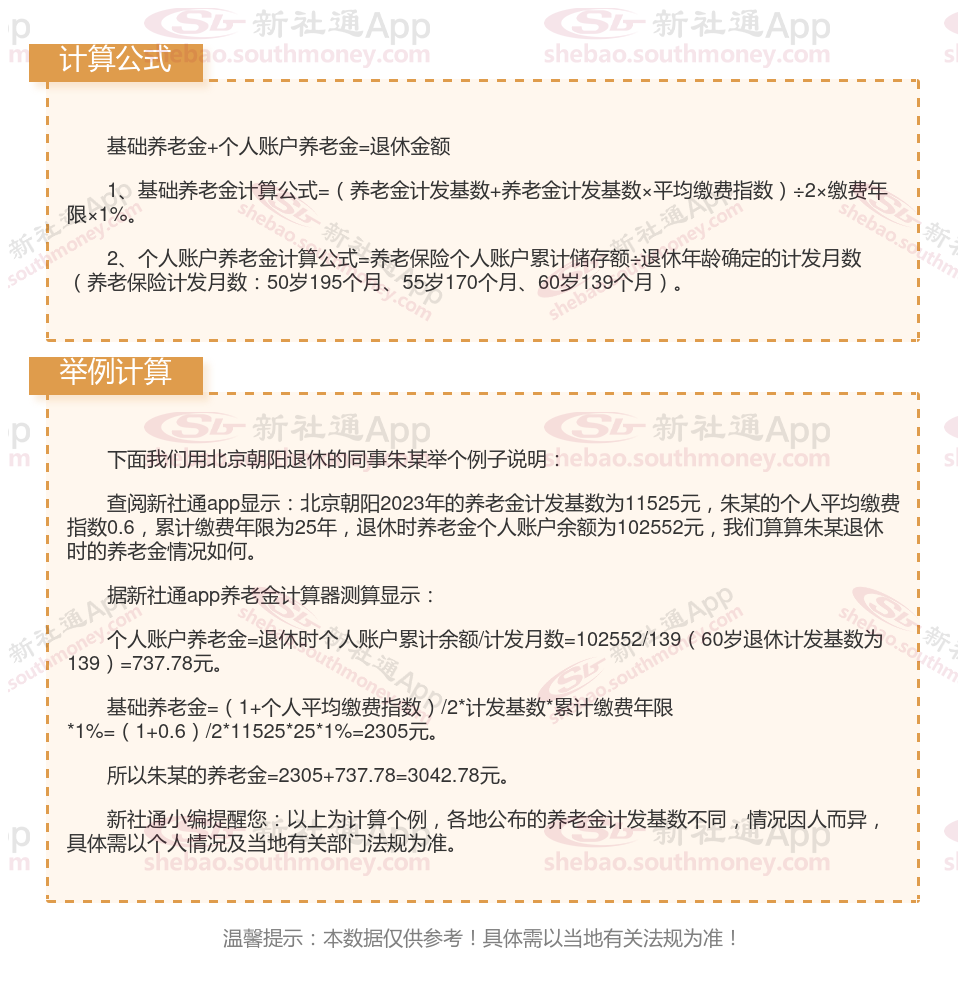 北京朝阳社保退休能领多少钱?(在线计算举例说明)
