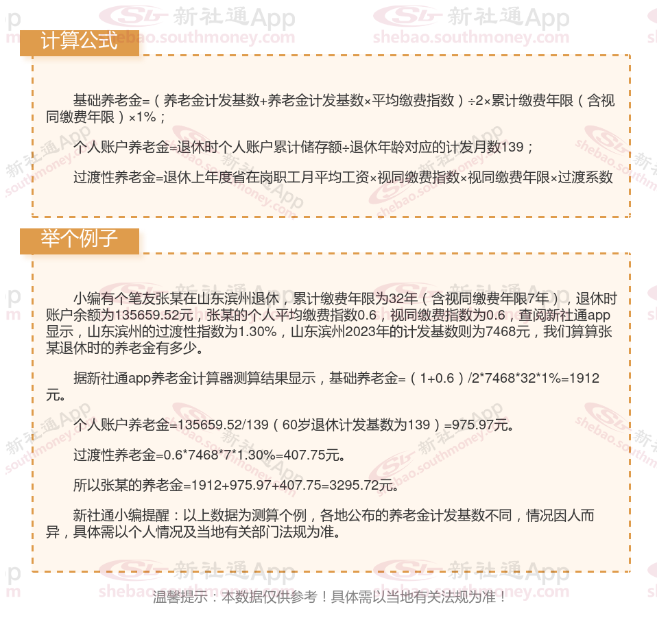 山东滨州养老金计算公式2024年计算方法(在线计算器)