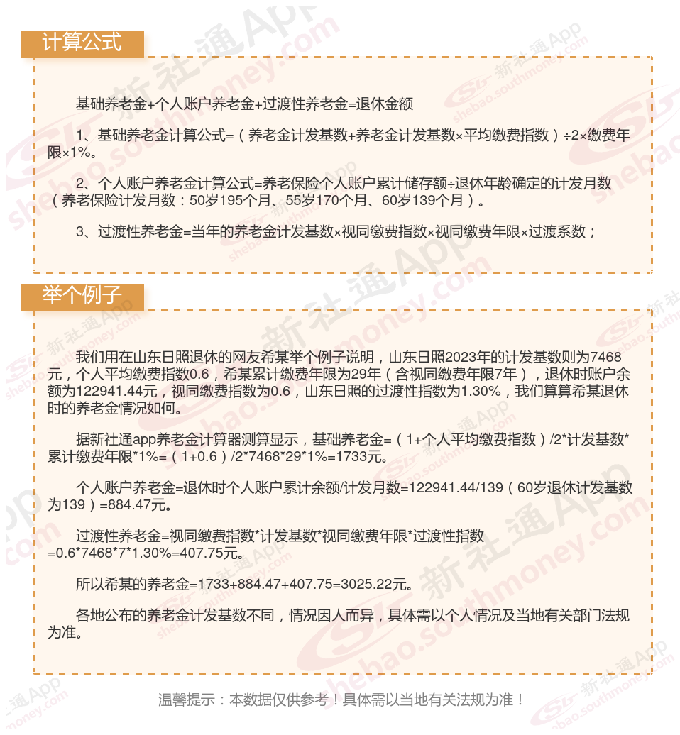 山东日照养老保险退休能领多少钱?(在线计算举例说明)