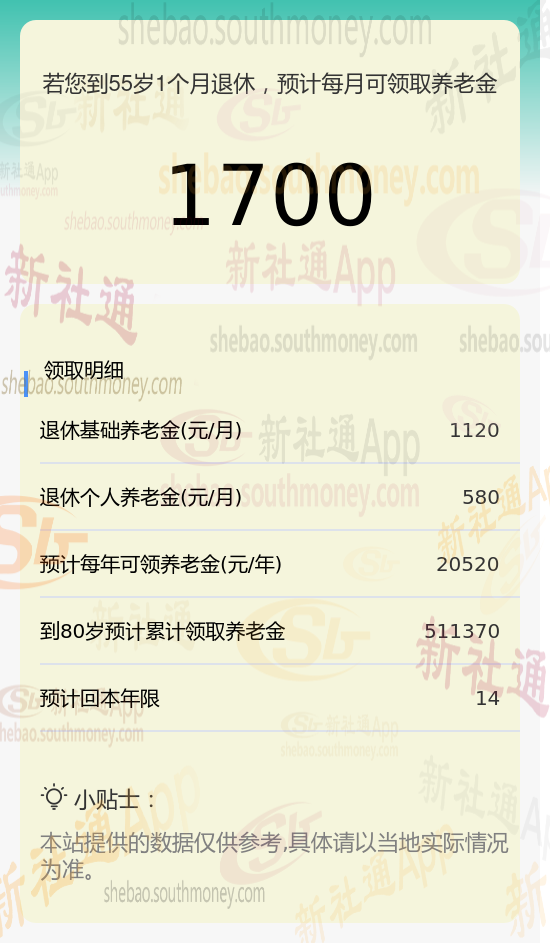 秦某,拥有长达15年的养老保险缴纳年限,其缴费档次一直维持在较高的80%水平。基于这些详细信息,我们使用了新社通app养老金计算器,并参考了当前的养老保险法规,对他未来的养老金进行了如下估算: