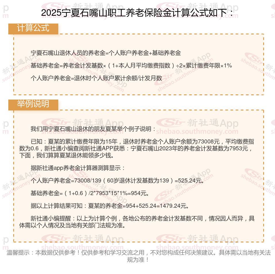 宁夏石嘴山养老保险退休能领多少钱?(在线计算举例说明)