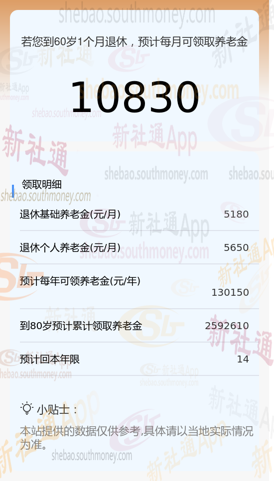 谢某,作为一位勤勉的职工,他的养老保险缴纳记录长达32年之久,且缴费档次一直保持在较高的300%水平。基于这些关键数据,我们利用新社通app养老金计算器,结合最新的养老保险法规,对其养老金进行了如下估算: