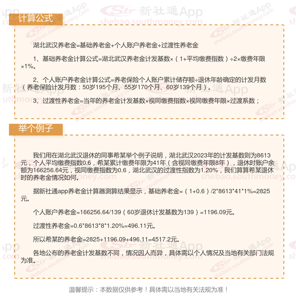 湖北武汉养老金计算公式2024年计算方法(在线计算器)