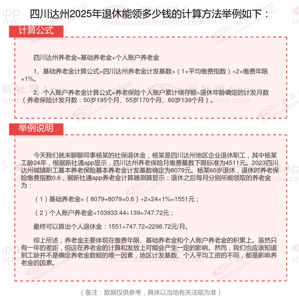 四川达州养老金计算公式2024年计算方法(在线计算器)