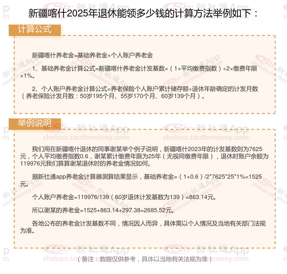 新疆喀什养老保险退休能领多少钱?(在线计算举例说明)