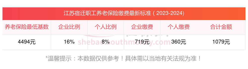 江苏宿迁养老保险缴费基数2023-2024最新标准,一个月要交多少钱?