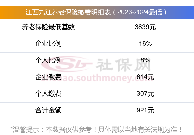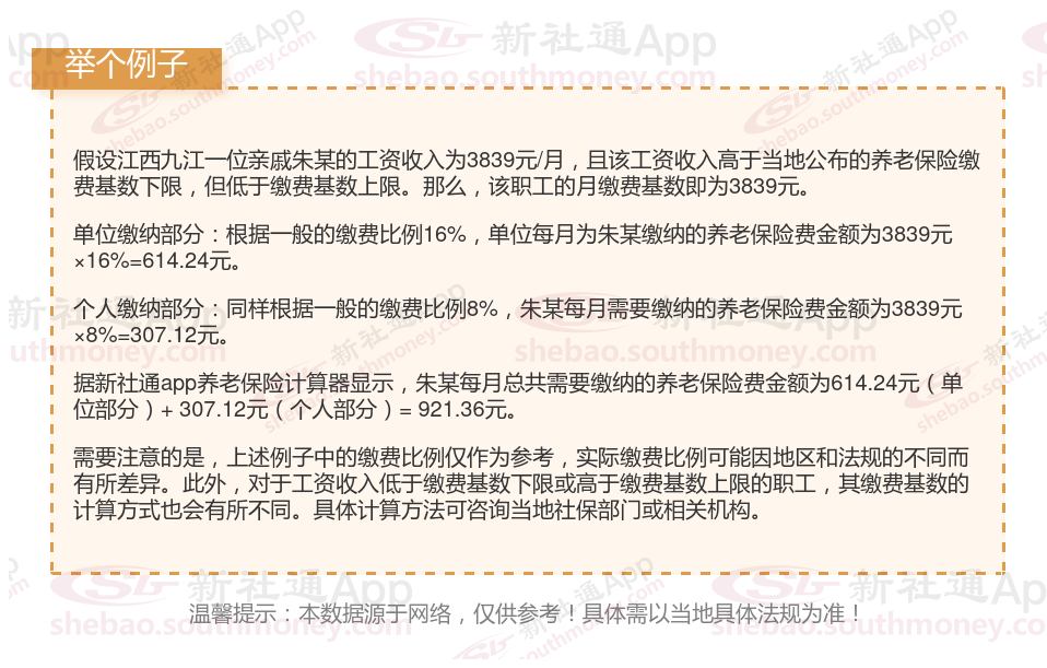 江西九江养老保险缴费基数2023-2024年最新标准(最低)要交多少钱一个月?
