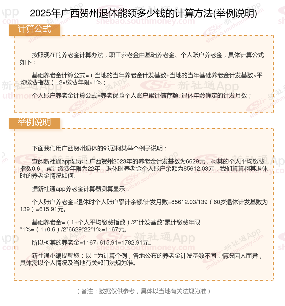 广西贺州养老保险退休能领多少钱?(在线计算举例说明)