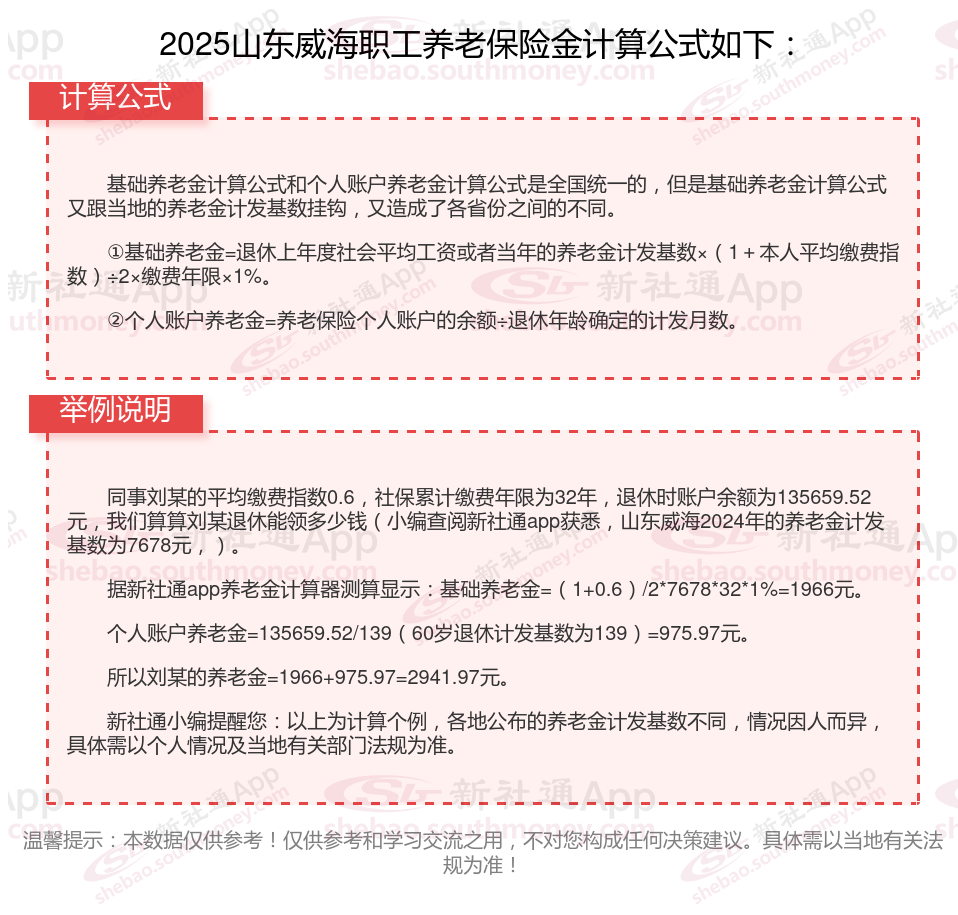 山东威海社保退休能领多少钱?(在线计算举例说明)
