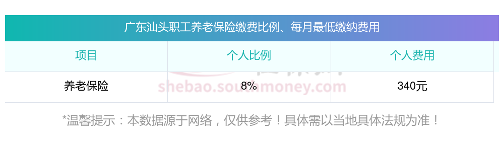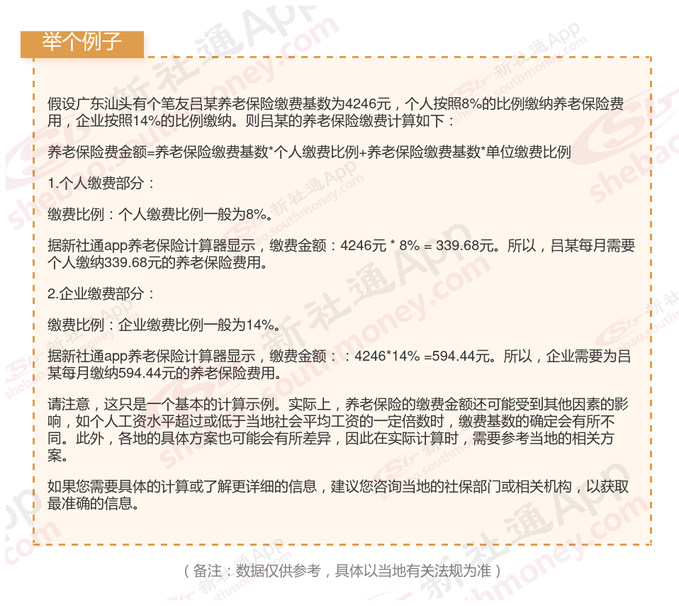 养老保险一个月要交多少钱?广东汕头缴费基数2023-2024年最新标准(最低)