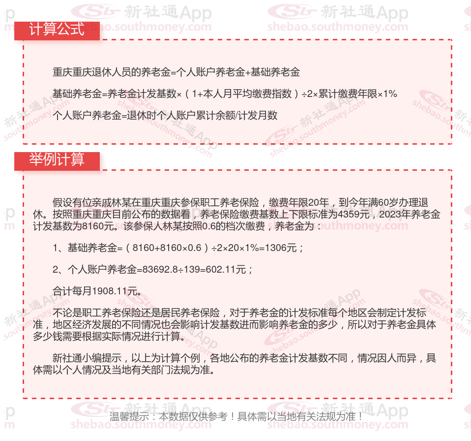 重庆重庆养老保险退休能领多少钱?(在线计算举例说明)