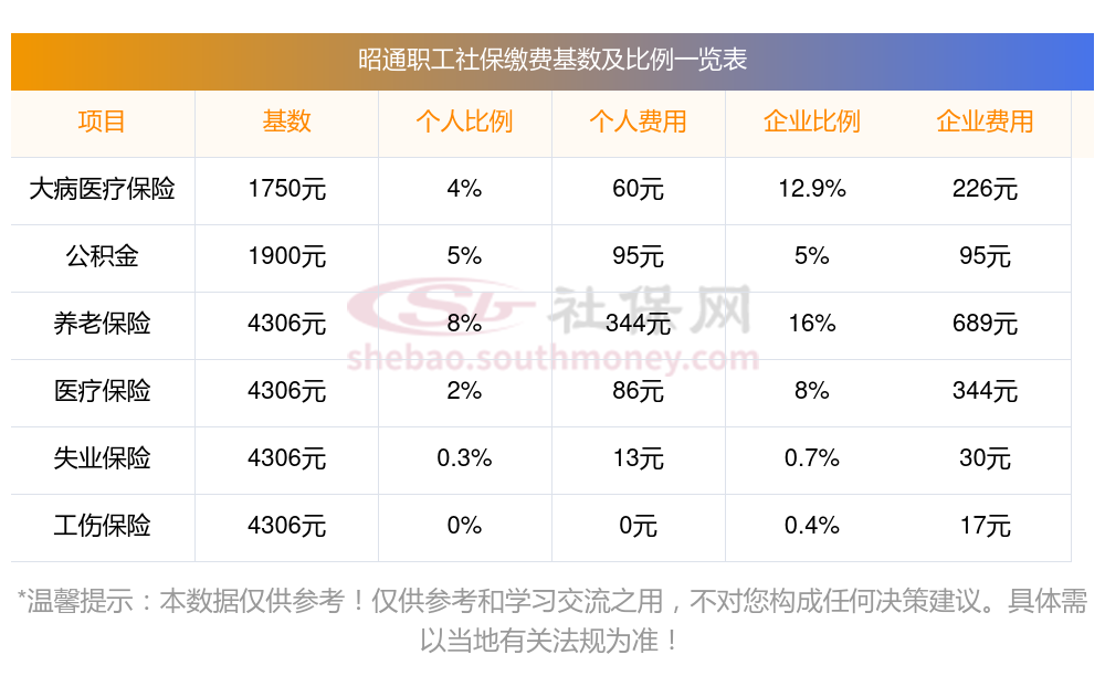 昭通社保缴纳情况是怎样的?一起和新社通APP一起来看看下面的明细表: