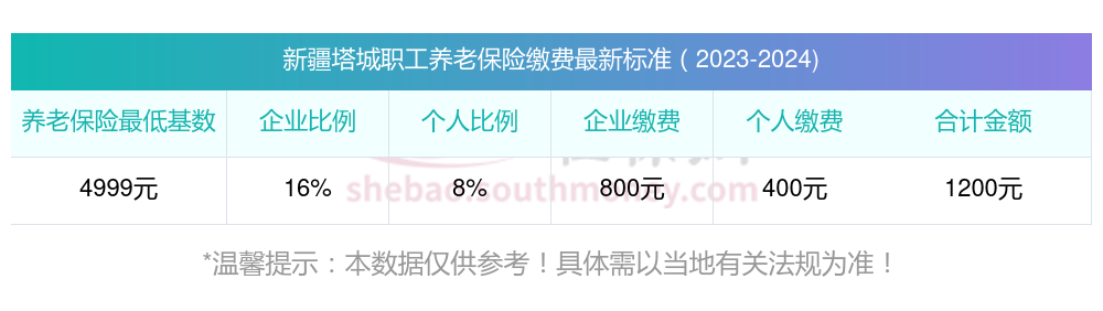 新疆塔城养老保险缴费基数2023-2024最新标准