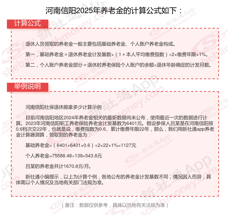 河南信阳社保养老保险交满能领多少钱?(在线计算举例说明)