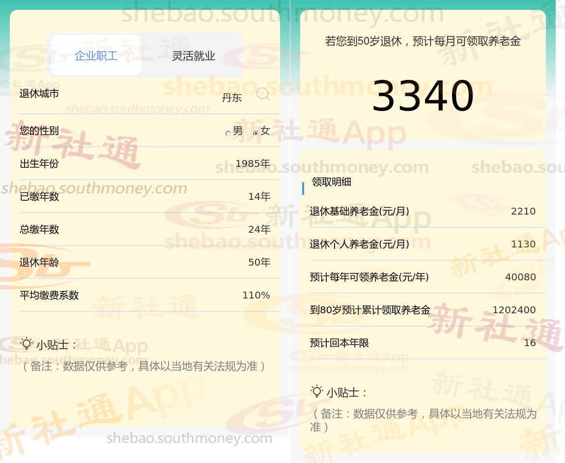 通过新社通APP-养老金计算所得:退休城市、出生年份、退休年龄、缴费系数都相同的情况下,社保缴费年限累计31年时,计算如下: