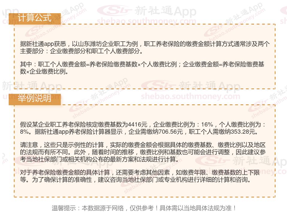 山东潍坊养老保险一个月要交多少钱?举例说明