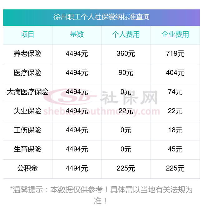 徐州社保缴纳情况是怎样的?一起和社保君一起来看看下面的明细表: