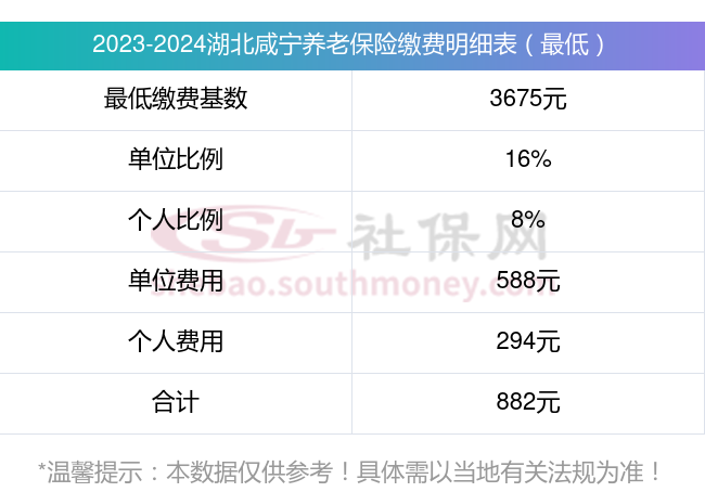 湖北咸宁养老保险缴费基数2023-2024年最新标准(最低)一个月要交多少钱?举例说明