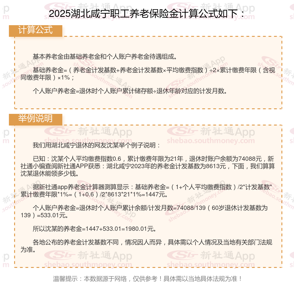 湖北咸宁养老保险退休能领多少钱?(在线计算举例说明)