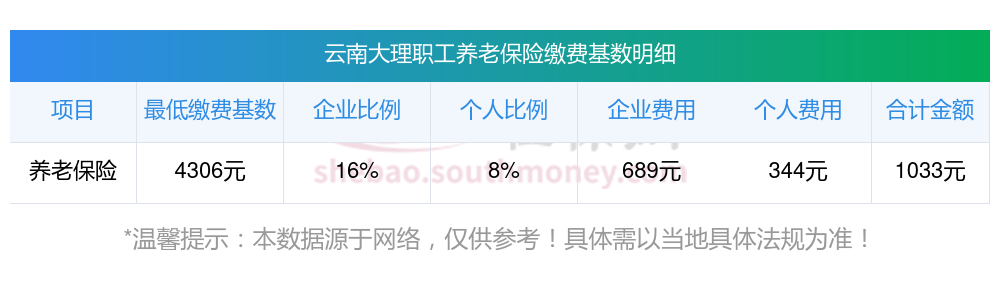 据新社通app获悉,云南大理2025年职工养老保险缴费金额的计算涉及到缴费基数和缴费比例两个关键因素。