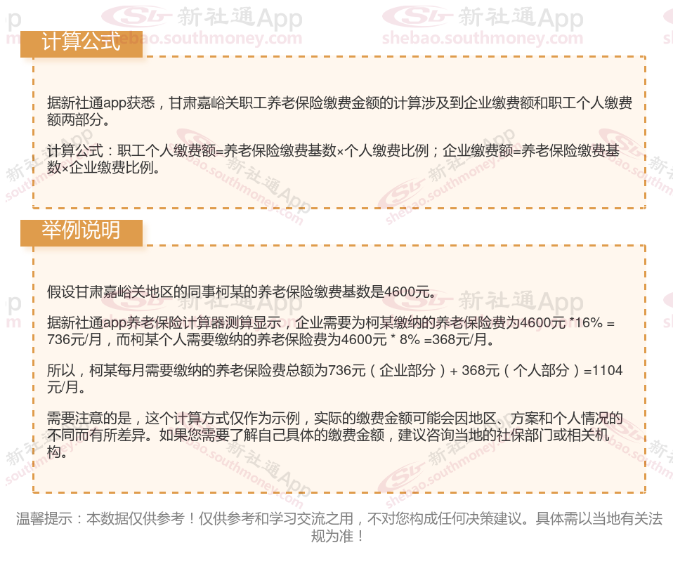 甘肃嘉峪关养老金计算公式2024年计算方法(在线计算器)