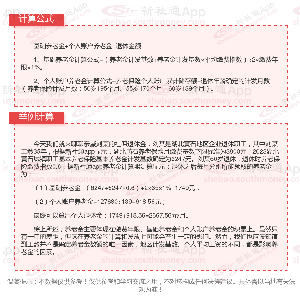 湖北黄石社保退休能领多少钱?(在线计算举例说明)