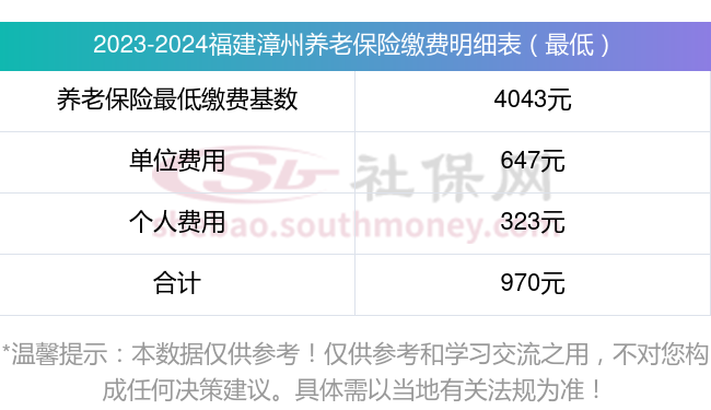 福建漳州养老保险缴费基数2023-2024最新标准如下