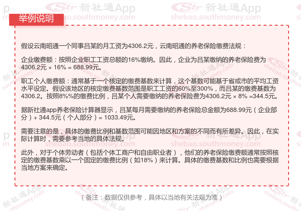 云南昭通养老保险缴费基数2023-2024年最新标准(最低)要交多少钱一个月?