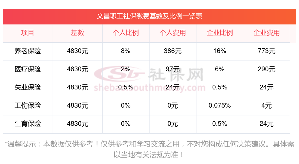 2025年文昌社保缴费多少钱?下表是2023-2024年文昌社保费用明细参考,如下: