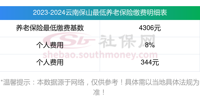 云南保山养老保险缴费基数2023-2024年最新标准(最低)