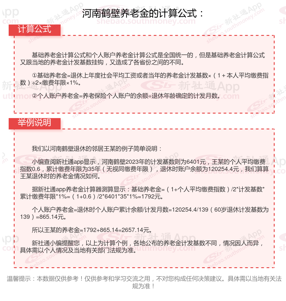 河南鹤壁养老金计算公式2024年计算方法(在线计算器)