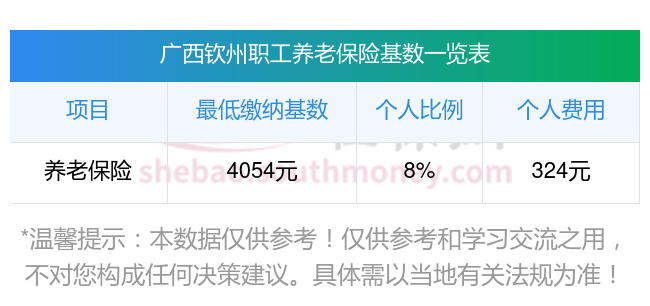 广西钦州养老保险缴费基数2023-2024最新标准,一个月要交多少钱?