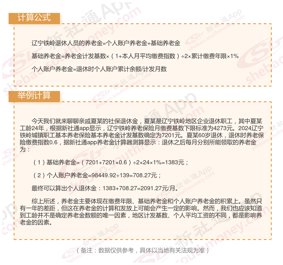 辽宁铁岭养老金计算公式2024年计算方法(在线计算器)