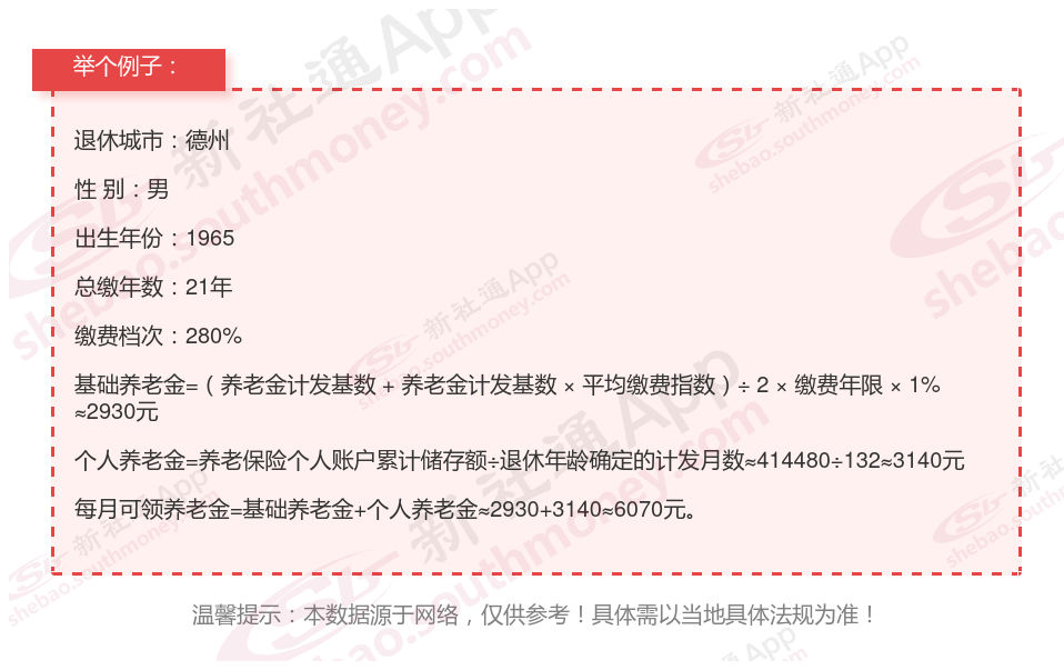 基于这些关键信息,我们使用新社通app养老金计算器对他未来的养老金进行了详细估算: