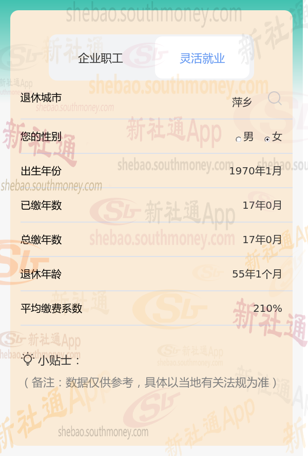 不久前,萍乡的一位女性灵活就业企业退休人员向我们提出了关于她养老金的疑问。她出生于1970年,已经拥有了。17年的工龄,且一直以来她的养老保险都是按照稍高于平均水平的210%档位缴纳的。她现在非常想知道,基于她的这些条件,她退休后每月能够领取到的养老金是否能够达到或超过3000元。