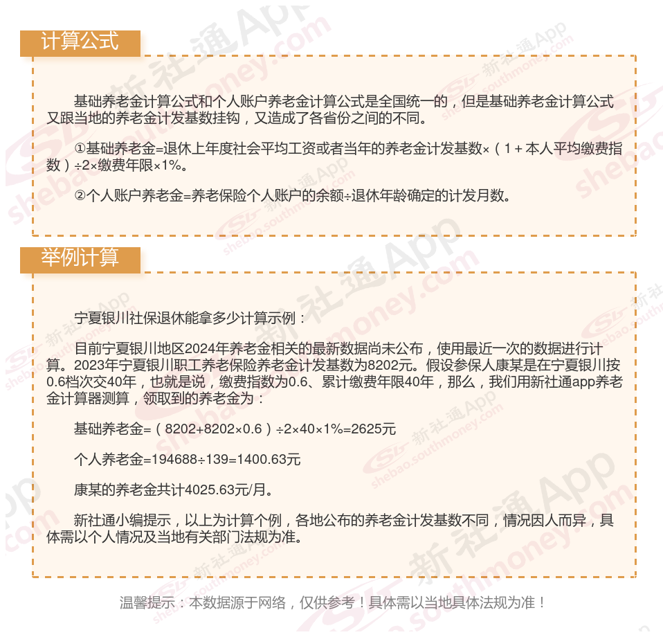 宁夏银川社保退休能领多少钱?(在线计算举例说明)