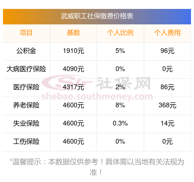 武威社保缴纳明细如下: