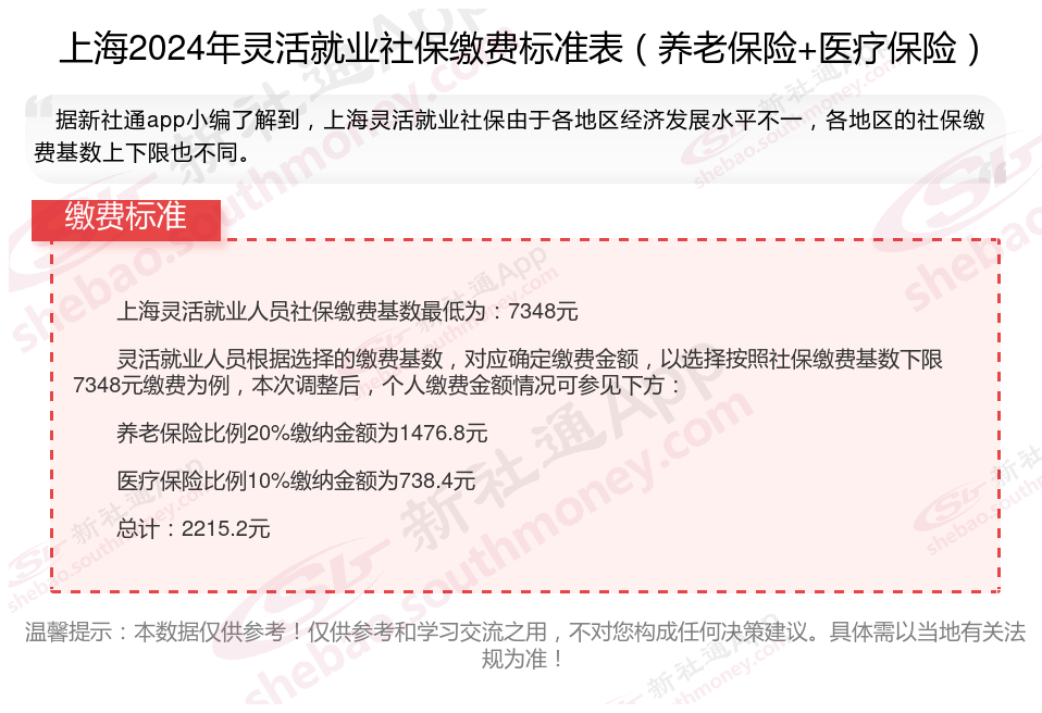 那么,灵活就业者社保是多少钱一个月多少钱?根据新社通app-社保缴费查询工具提供的2025社保缴费标准详情数据: